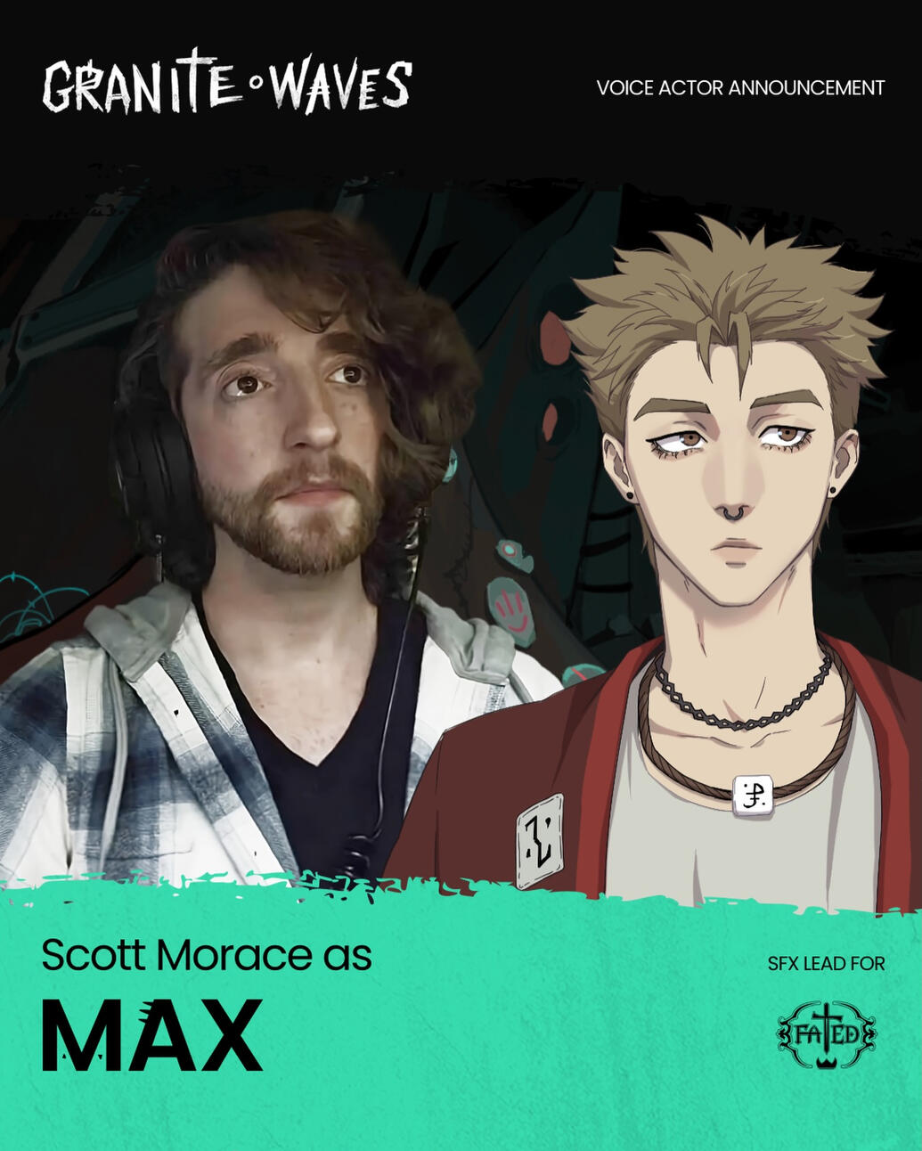 After attending more than twenty conventions since 2013 and meeting so many people in the industry who showed him how much love and passion there is in this work, that early interest started to feel like something he could truly pursue.Fast forward to 2025: what began as posting musical covers on TikTok slowly shifted into a new dream of becoming a voice actor. In September 2025, Scott posted his first official audition, voicing the character Max in Granite Waves, marking his first real step into the field.A few months later, he expanded his creative work even further, becoming the SFX and Foley Lead on Fated: The Musical, while also voicing multiple characters in the accompanying video game.Scott continues to grow his craft with every project, driven by the same excitement and passion that first inspired him as a kid.